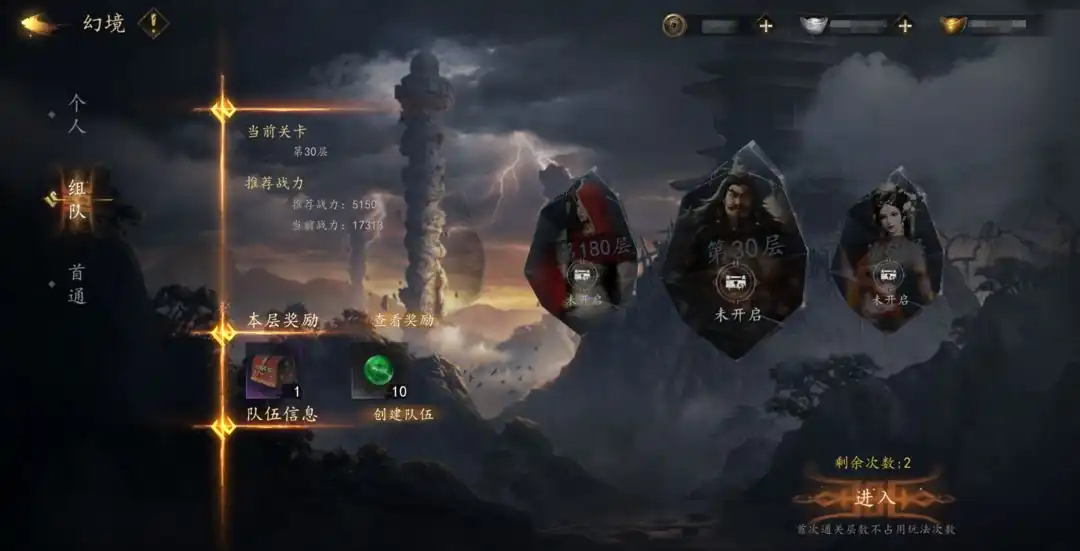 剑中里面每天都会开启幻境挑战,只要击败每层关卡的首领就能获得首领身上掉落的易筋丸,幻境挑战分为单人挑战和组队挑战,对玩家的战力也有着一定的要求,只有符合幻境的战斗才会开启。