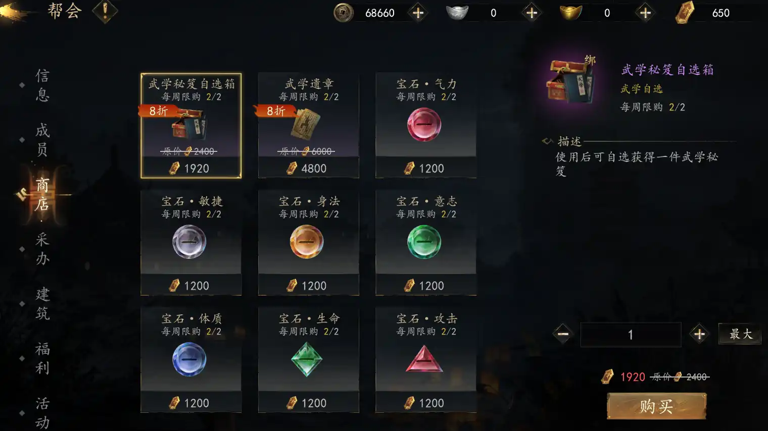 从帮会商城里面购买时是最为直接的一种方式,只不过每天可以购买的易筋丸数量有着限制,而且还需要花费帮贡,帮会贡献可以购买很多稀有的材料,不建议浪费在易筋丸身上。
