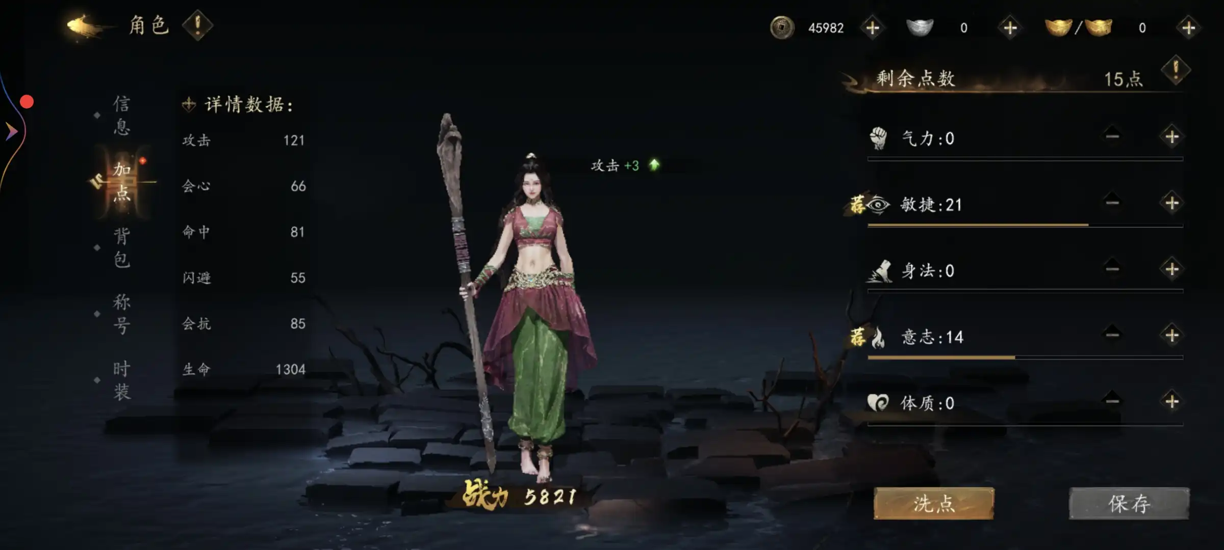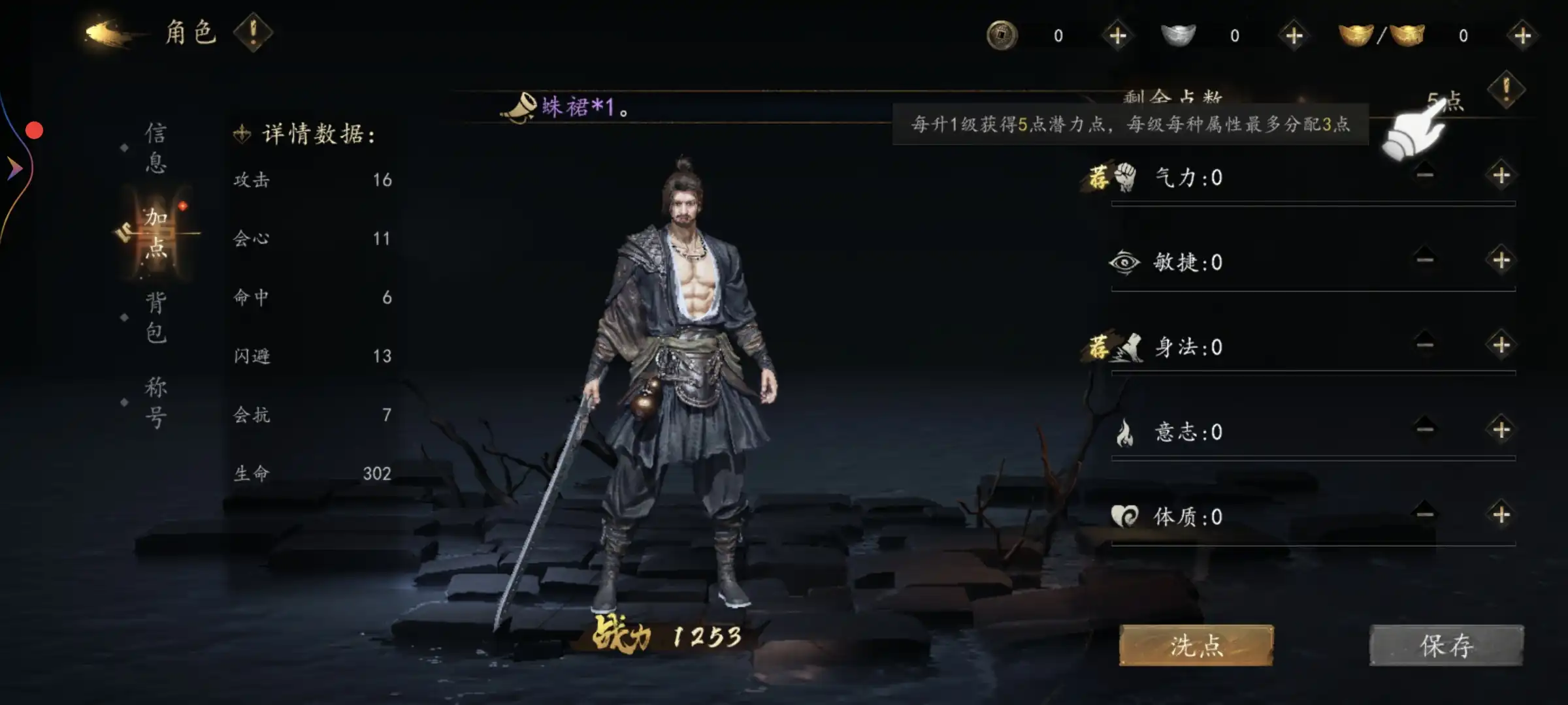 剑阁是一个近战类英雄,这个英雄比较擅长突进和对手正面硬刚,而且这个职业的坦度也是比较不错的。我们再给剑阁加点时就要侧重身法,身法的作用是提高角色闪躲能力和攻击能力,除了主加身法以后,还可以再给意志多加一点点数,提高会心一击的概率。