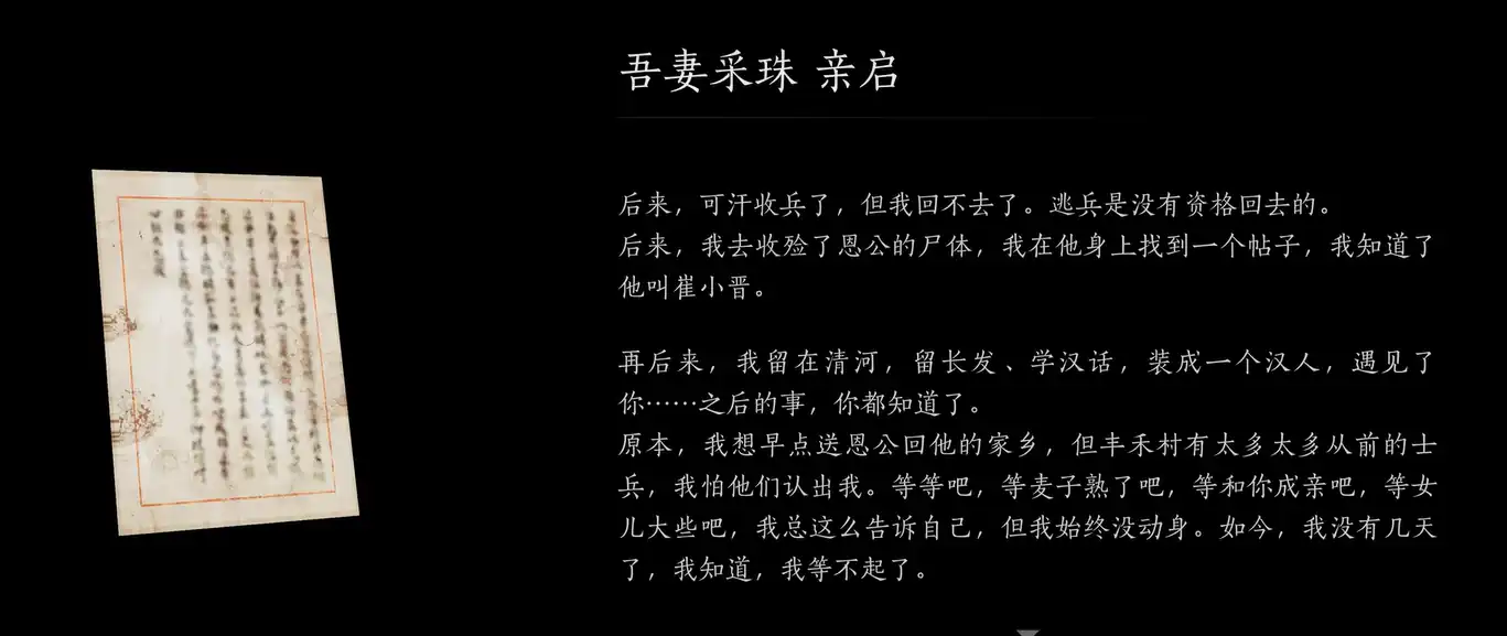 整个任务结束时,村民们在得知崔小晋的一生后,纷纷陷入沉思。这份悲剧不仅仅是崔小晋一人的命运,更是整个家族、整个村庄的深刻痛苦和遗憾。