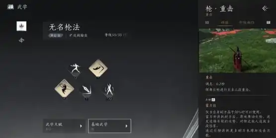 无名枪法是一种专为追求高输出、速战速决的玩家设计的近战武学,这门枪法在《燕云十六声》中,以其简洁而强大的技能组合,赢得了众多玩家的喜爱。其技能包括: