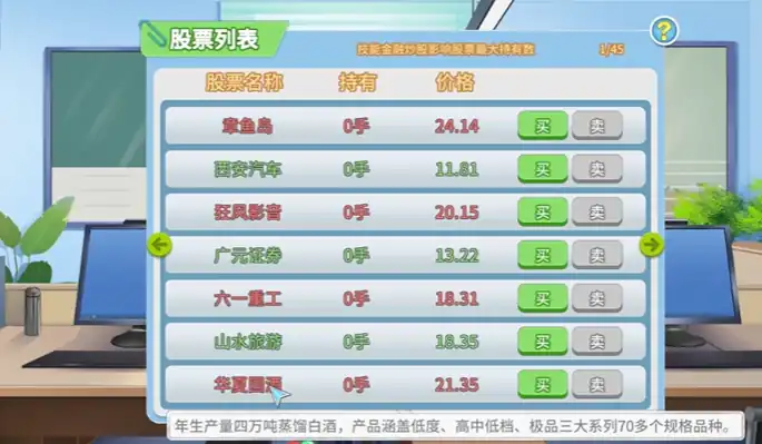 在投资过程中,选择合适的股票是关键。对于初次接触炒股的玩家,建议优先选择波动较小的稳定型股票,降低风险的同时积累经验。游戏中的股市走势呈现出一定的规律性,玩家可以通过观察历史数据,分析每只股票的价格波动区间,找到低买高卖的最佳时机。比如,在牛市行情中,选择那些价格尚未大幅上涨的潜力股进行布局,往往能够获得可观的收益,而在市场回调时,则应果断止损或持币观望,避免更大的损失。