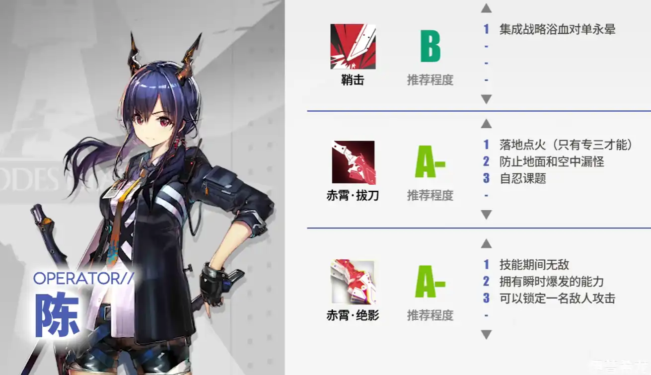 例如银灰的短兵器和长兵器,会限制攻击距离,但同时会增加伤害,玩家可以根据怪物的数量多少以及距离的位置,进行更改游戏当中大部分的前锋角色都是具备有控制能力的,在进行战斗的期间如果玩家出现了怪物群聚的情况,可以通过调整前锋角色控制技能的方式,来为自己解围。
