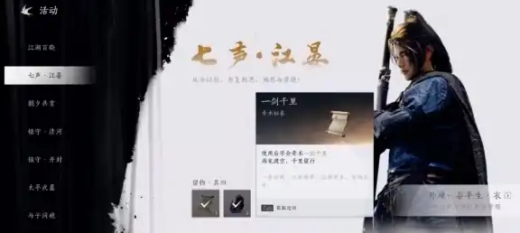 《燕云十六声》为鼓励玩家持续游戏,设置了许多签到奖励活动,玩家在游戏的活动页面中,找到七声·江晏活动分类,只要连续签到四天,即可轻松获得一剑千里轻功奇术。