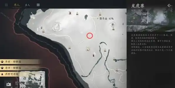 清河龙虎岭是《燕云十六声》中一个重要的地区,充满了各种各样的任务和探索点,龙虎寨传送点则是玩家进入这一地区的入口之一,位于龙虎寨的南边,传送点附近有一些NPC和任务提示,玩家可以通过与他们交谈获取一些有用的线索和信息。