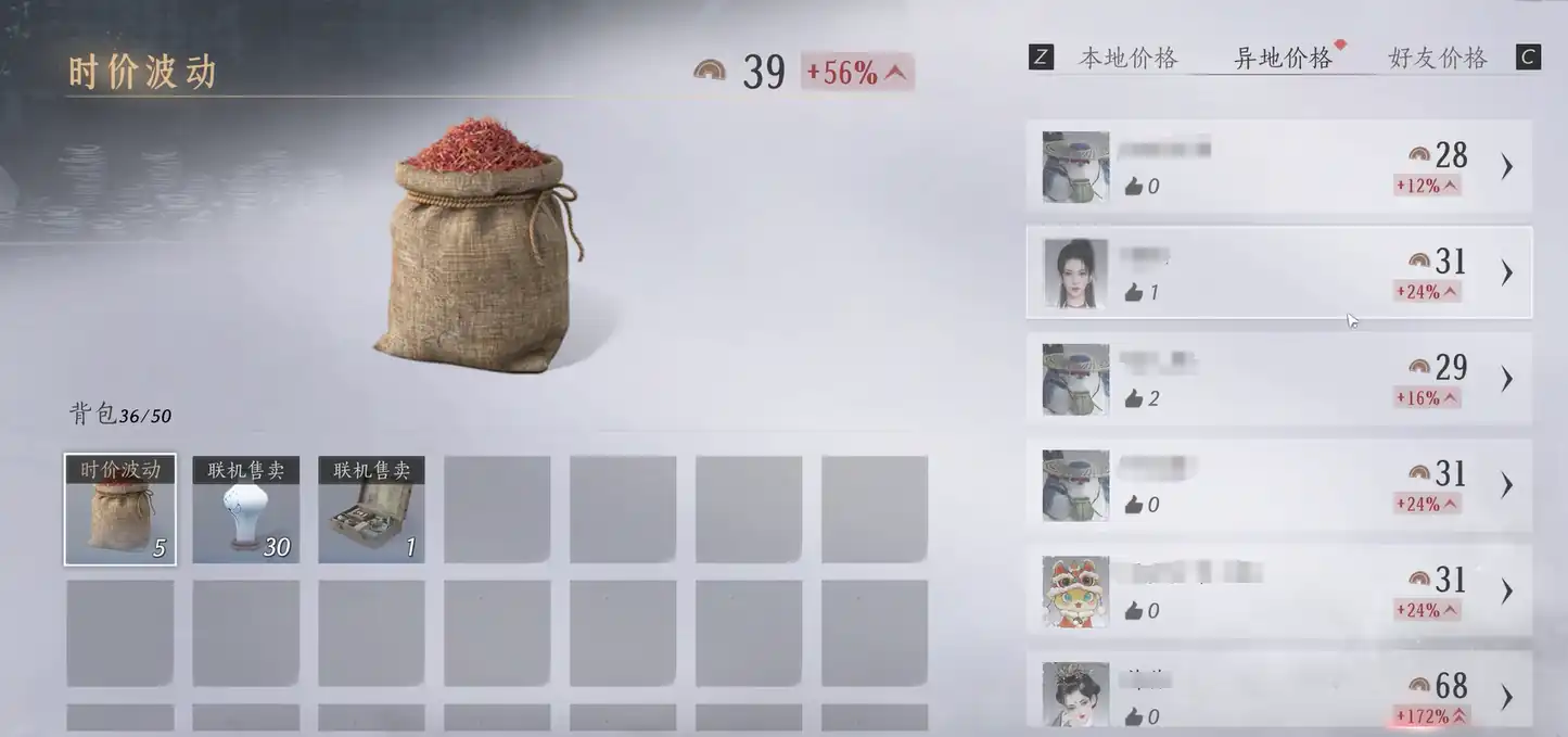 如果你喜欢更具策略性的赚钱方式,倒卖货品是一个不错的选择。游戏里有一个类似牙行和市买司的系统,玩家可以在不同的地方购买商品,然后将这些商品带到价格更高的地方出售,通过赚取差价来积累短陌钱。比如,你可以在一个玩家的世界中以低价买到米醋,再将其带到另一个玩家那里,以更高的价格卖出。这样一来,短陌钱就轻松到手了。
