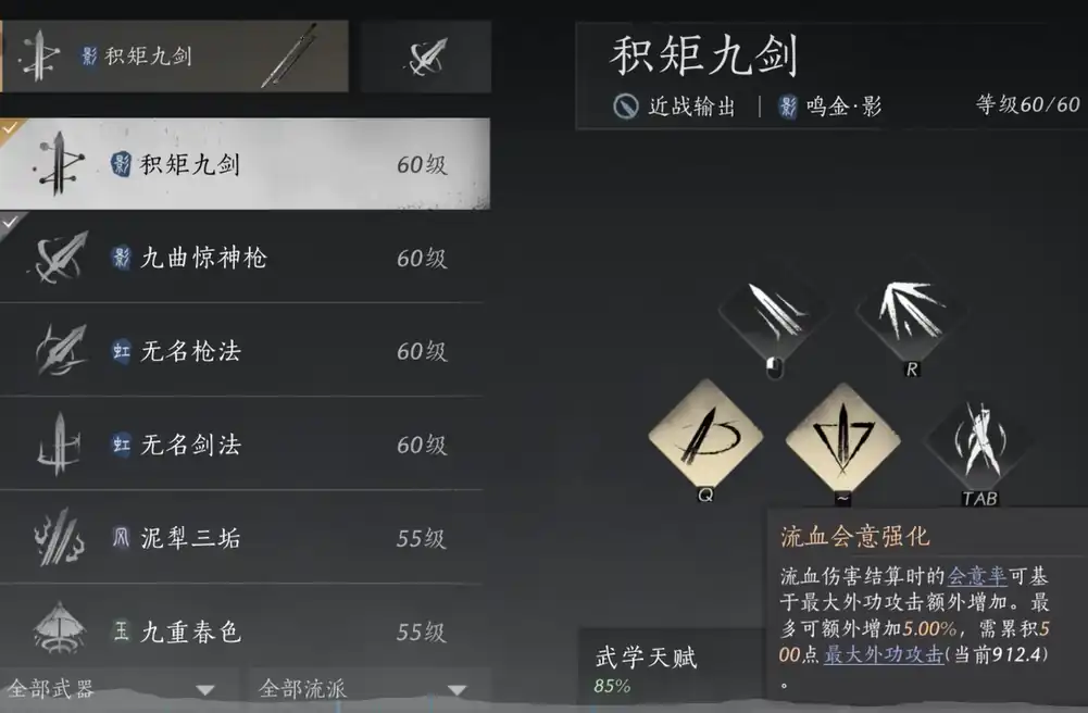 当你成功完成这一操作后,积矩九剑的技能就会归你所有。别这门技能并不会在刚学到时就达到满级,要想让它发挥出更强的威力,后续的升级可不能忽视。