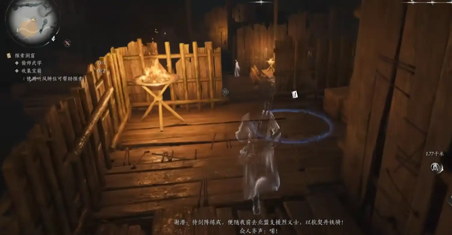 记得随时注意山洞内的宝箱,它们可能藏有升级积矩九剑所需的材料或者其他有用的资源,千万别错过。最后你将抵达山洞的二层,这里才是最关键的部分——偷学积矩九剑。在这个过程中,你需要尽量提高技能进度条,一旦进度超过50%,系统会显示黄色的圈圈。这时,必须准确点击黄色圈圈,否则偷学就会失败。而如果不小心点击了白色圈圈,任务也会立刻失败。所以,手速和准确度是这一步成功的关键。