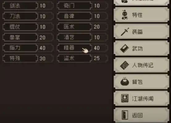 定力的选择则极具策略性,它决定了内力上限和武学等级的突破空间。对那些追求深厚内功积累的玩家来说,定力是后期发挥的关键。无论是掌控特殊武学还是应对长线作战,充足的内力都能让角色在战斗中游刃有余。而根骨则直接影响生命值与可修炼的武学数量,这一属性是生存与多样性流派的保障。尤其是在面对高危江湖任务或多变的战斗场景时,高根骨可以让角色在险境中立于不败之地。