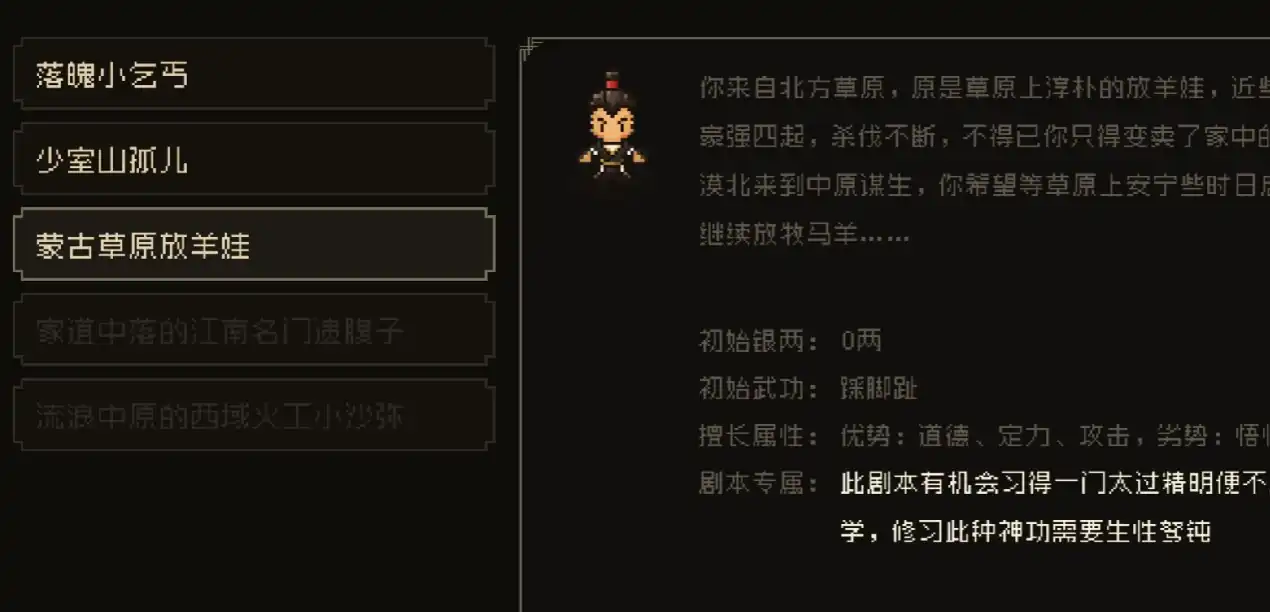 由于在首个选项当中无论玩家如何选择,都有一个属性数值会降低,所以玩家在这里直接选用能够增加自己所需要属性值的选项即可,例如玩家想要走低道德流派,那么就选择装傻。