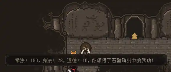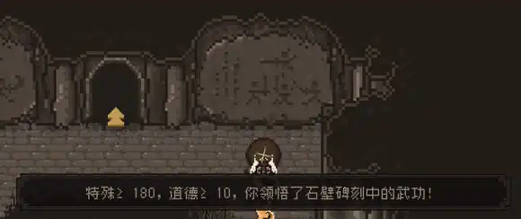 右侧石碑则对应特殊武学【十八泥犁功】,这是一门以大范围AOE闻名的强力技能,其双连击效果和超大范围攻击极大提升了清场效率。想要领悟这门武学,角色的特殊属性需要达到180以上,同时道德值也必须大于10。这种配置更适合专注于特殊武学的玩家,特殊技能点的积累需要通过学习相关秘籍或完成特定任务来提升。十八泥犁功的威力不仅体现在其伤害数值上,更体现在战斗中的实用性,尤其是在面对大量敌人或需要快速解决战斗时,这门武学能提供极大的优势。