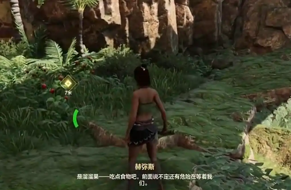 在进入之前新手们可以吃下之前采到的溜溜果和椰子,它们能提供35点血量上限,50点耐力上限以及2点的生命恢复,让我们有更高的续航能力,正式见到boss会发现它只有一半的血量,因此作战难度不高。