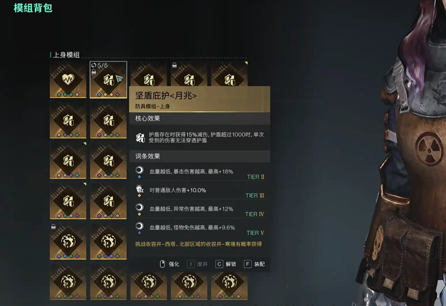 模组选择推荐幸运牌手,可以提高玩家的伤害比,衣服选择坚盾庇护,来提高玩家自身的防御力,拯救者面罩第一次使用会触发电涌的伤害,让敌人伤上加伤。