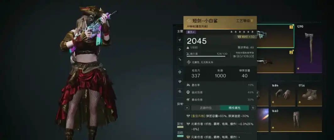 很多朋友肯定都知道大白鲨,但是小白鲨其实也非常不错,虽然基础伤害只有29,但是它的优点是在攻速方面,攻击速度非常的快,达到了1000,而稳定也维持在10%,在战斗时能稳定持续的对敌人攻击,间接的也将命中得到了提高。武器特性能触发不稳定爆弹,在连续命中对手15次后可触发,而且爆炸的时间能延长0.3秒,如果敌方身上有不稳定爆弹,每命中一次,爆弹最终的伤害都能提升10%,命中弱点伤害直接翻倍。