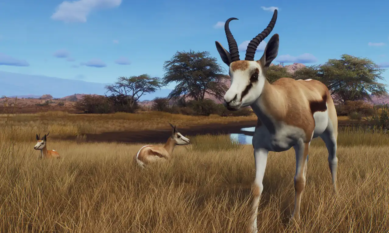 有时候部分一部分动物处于受伤状态,这个状态是比较好狩猎的,但是这类动物都会隐藏自己的踪迹,而玩家就可以跟着动物受伤的情况,不断前进,还能查到周围的痕迹以及生活环境,从而判断出动物的位置,这样狩猎的代入感会更加强烈哦!