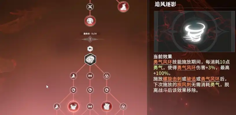 勇气满后,重新开启风环,利用风姿卓绝和破追补充勇气,再次获取疾风刺。若所有技能进入CD,可开启意志维持循环。青岚骑士的勇气回复本就较快,在这套流派中能做到技能与勇气的高效联动。重装流的精髓在于通过风环、破追和螺旋击刺免费获取疾风刺。疾风刺不仅补充锐力,还能触发普通攻击派生的疾驰锋刃,返还勇气,形成完整循环。