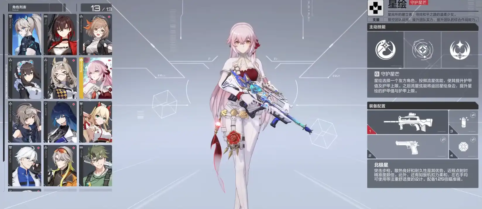 主武器北极星,原型是法玛斯FAMAS突击步枪。它是法国的一款无托式突击步枪,以其可靠性和精准度在世界枪械领域中占据一席之地。在《卡拉彼丘》中,这把法玛斯F1经过了艺术化的重塑,与星绘的角色定位以及游戏整体风格完美融合。散热良好和耐久性是其优势,近程点射时精准度颇佳,配备1.25倍瞄准镜。