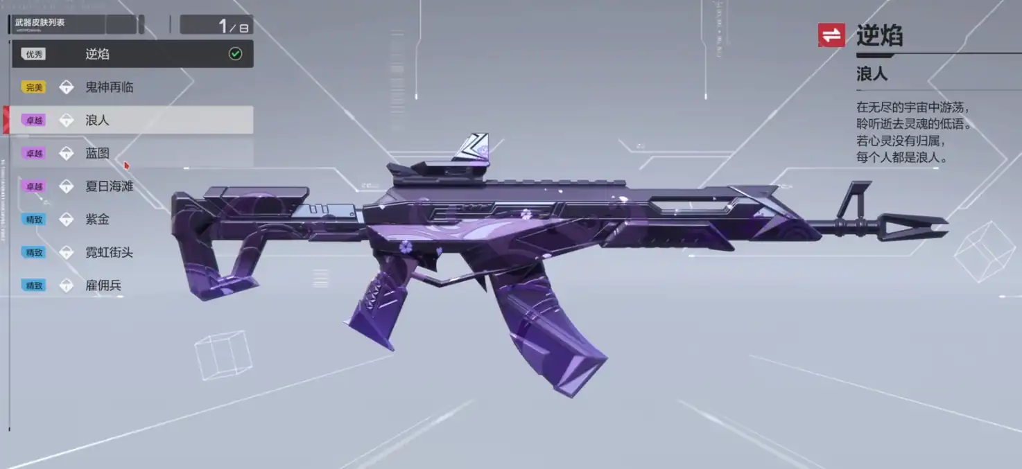 主武器逆焰,原型是在经典的AK-47基础上改进而来的AKM。在现实中,AKM运用了更轻便的材料以及更稳定的制造技术,不仅减轻了重量,还提升了射击的稳定性。在游戏里,逆焰突击步枪性能可靠,火力强大,性价比奇高。恶劣环境有高耐性,输出能力稳定,堪称强悍与诗性的完美融合,配备1.25x倍瞄准镜。