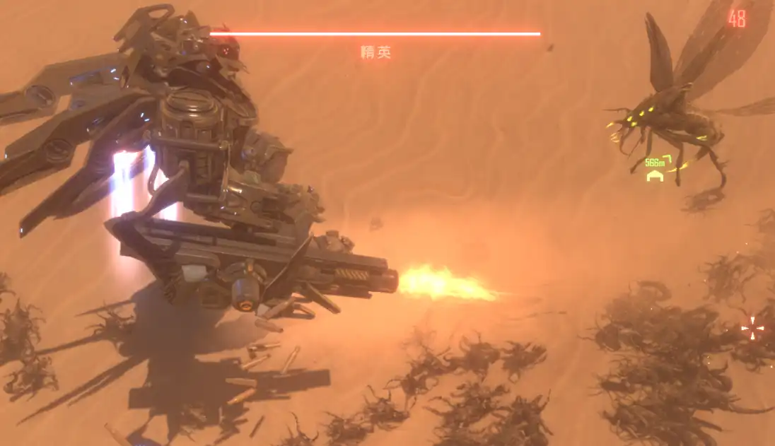 但是这片星球上居住着大量的虫族,这些虫族会阻碍玩家们的探索,所以就需要使用机甲的武器对这些虫族进行横扫,将这些虫族的虫子全部消灭才能继续前进,否则就会被虫族直接杀死,被埋葬在这片荒漠之中。