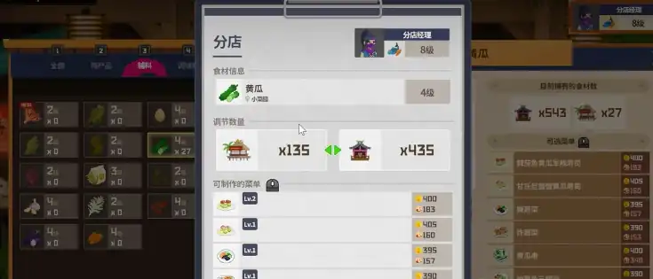 黄瓜料理在游戏中的实用性不容小觑,首先,黄瓜料理的制作材料简单,只需黄瓜即可,这使得玩家在资源有限的情况下,依然能够制作出美味的菜品。其次,黄瓜料理的单价虽然不高,但其制作成本低,适合在分店中大量制作和销售,从而为玩家带来稳定的收入。此外,黄瓜料理的解锁方法多样,玩家可以根据自己的游戏进度和策略,选择最适合自己的解锁方式。