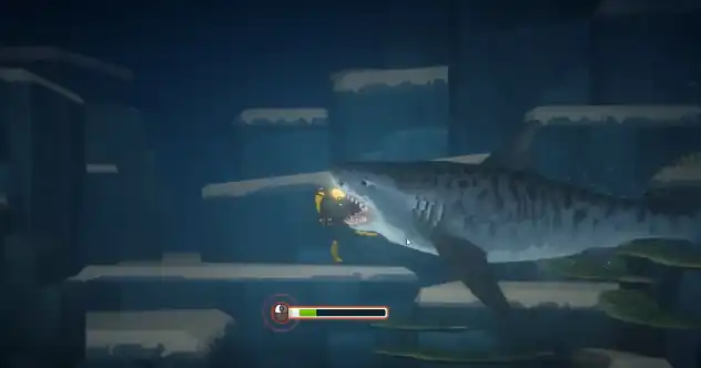 要是不小心被撞击到,就应该尽快的逃脱,并且需要集中注意力。被咬中之后没有及时的挣脱,那么撕咬攻击的能力就会直接耗费掉玩家将近2/3的氧气。如果氧气不足,随时都有可能会被咬死。