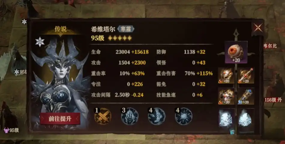 她的被动技能龙神血脉是其生存与输出的基础。技能机制降低自身受到的范围伤害,其中普通范围伤害减少30%,而来自首领敌人的范围伤害减少15%,为她在高强度战斗中提供了有效的生存保障。与此同时,每当场上有目标死亡时,她会获得一层“龙血”状态,该状态不仅持续时间无限,且无法被移除,最多可叠加至20层。每层龙血会为她提供额外1.5%的攻击力与1.5%的重击伤害,而在满层状态下,她的攻击将无视敌方目标35%的防御。随着战斗时间的推移,“龙血”状态的积累将大幅提升她的伤害输出能力,尤其在长时间的生存战中,她的威慑力会成倍增加。