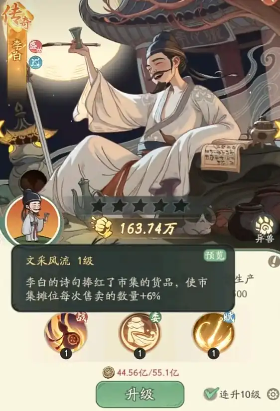 在游戏里连续完成签到,七日后就能拿到李白。该名士不管是开荒还是后期都能打出高额的伤害,也可放在酒馆里来提升酒馆的产出,提高玩家获得的收益。