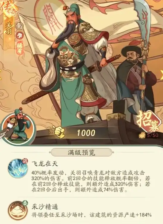 很适合用来速推的名士,只要关羽在前两回合有释放技能,所造成的伤害会获得额外提高的效果,发动后战斗大多会在极短的时间内就彻底结束。