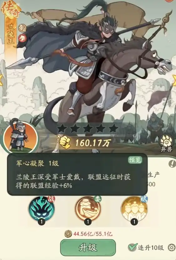 前期就非常强的一名金色品级名士,拿到后配上几位紫色名士就能无压力开荒,还自带技术研究时间减少的效果,还有着获取难度低等特点,实用性拉满。