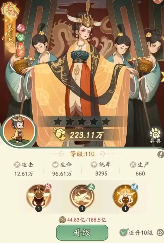 武则天是拿到后必练的名士,她有着游戏很稀缺的回血技能,又可为队伍提供不错的减伤效果,保人能力很强,能为阵容的整体战力带来非常大的提升。