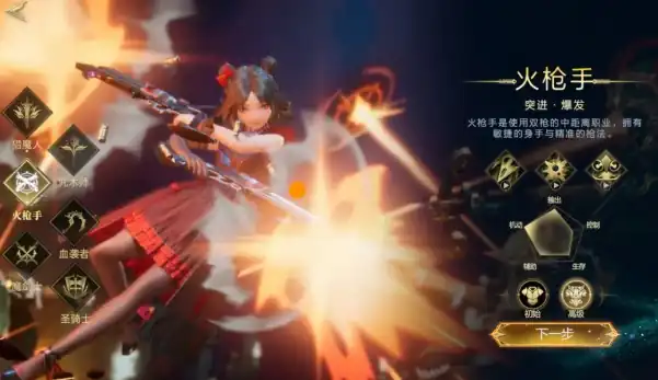 火枪手是中距离作战的强者,主打突进和爆发的他们,还拥有无语伦比的机动性和毁灭性,追求极致输出的平民玩家们肯定不能错过,他的第一个技能会朝着前方快速开火,对敌人形成伤害并降低移速,第二个会连续射击多次形成多段攻击伤害,第三个能进入到移动射击的状态,持续朝着固定方向射击,在这期间能自由的移动并且移动速度上升。