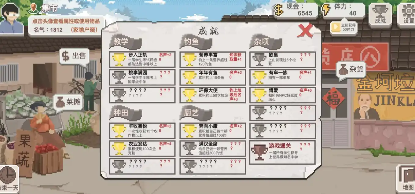 同时游戏中还拥有杂项成就,但是总的来说,《乡村老师》游戏中的成就系统丰富多样,既有与教学相关的成就,也有与金钱、名声等相关的成就,还有隐藏成就等待玩家去探索和解锁。这些成就不仅增加了游戏的趣味性和挑战性,也让玩家在完成成就的过程中获得成就感和满足感,因此感兴趣的玩家们抓紧去游戏中体验一下吧!