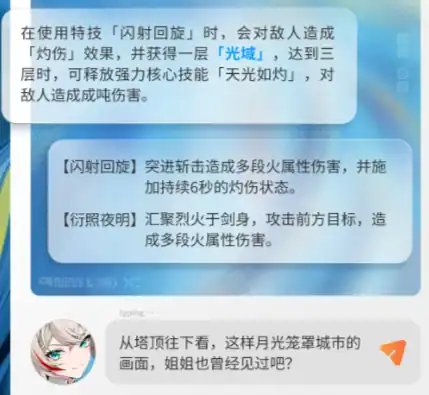 其次,青乌的战斗能力也是她的亮点之一。尽管她失去了记忆,但她的战斗能力依旧出类拔萃,身姿如同历战之兵。在游戏中,青乌可以展现出强大的战斗技巧和策略性。她在使用特技「闪射回旋」时,会对敌人造成「灼伤」效果,并获得一层「光域」,达到三层时,可释放强力核心技能「天光如灼」,对敌人造成巨额伤害。其技能【闪射回旋】可以突进斩击造成多段火属性伤害,并施加持续6秒的灼伤状态。其技能【衍照夜明】可以汇聚烈火于剑身,攻击前方目标,造成多段火属性伤害。