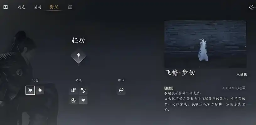 在游戏开始时,玩家需探索地图,寻找一位名为齐声的NPC角色。为了获取技能点数,玩家需向其呈献稀有宝物。在技能界面中,玩家应定位到轻功类别,并根据个人需求调整各项技能的等级。轻功分为三种,飞檐和身法以及潜水。如果玩家渴望掌握攀墙跃顶的本领,则需将飞檐与身法技能提升至满级。飞檐技能能提升玩家的地面移动速率,而身法中的逐影技能则能延长玩家在空中悬浮的时间。一旦玩家解锁了这两项技能,就能施展飞檐走壁的绝技。