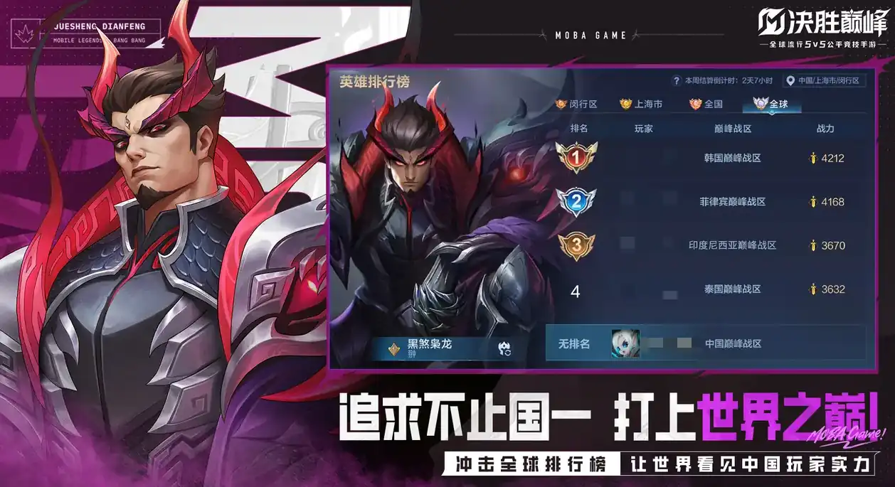 游戏更是支持全球排行榜,国服第一?不,争做全球第一,有更高的排行榜在等待着玩家去挑战。此外决胜巅峰还首创败方MVP不掉星的机制,本着对玩家努力的尊重,拒绝被算法支配。游戏节奏也很快,每局比赛通常在10-15分钟,适合移动端玩家的碎片化时间。