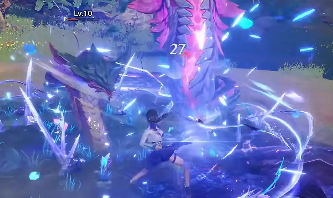 所以准备先将眼前的这些魔兽先给击败。接下来便是一场教学战斗。咱们的敌人虽然等级是10级,但是整体的实力比较弱,我们只需要使用普通和技能便可以将其给轻松击败。在击败第一波敌人后咱们会解锁新的技能,我们需要使用新技能来对付第二波出现的敌人。第二波敌人也击败之后,这里会进入到剧情,百年的曼陀罗蛇会出现,咱们目前的实力确实不是它的对手,这个时候会出现一只雪白的小兽前来帮助我们,之后又是一段战斗教学。