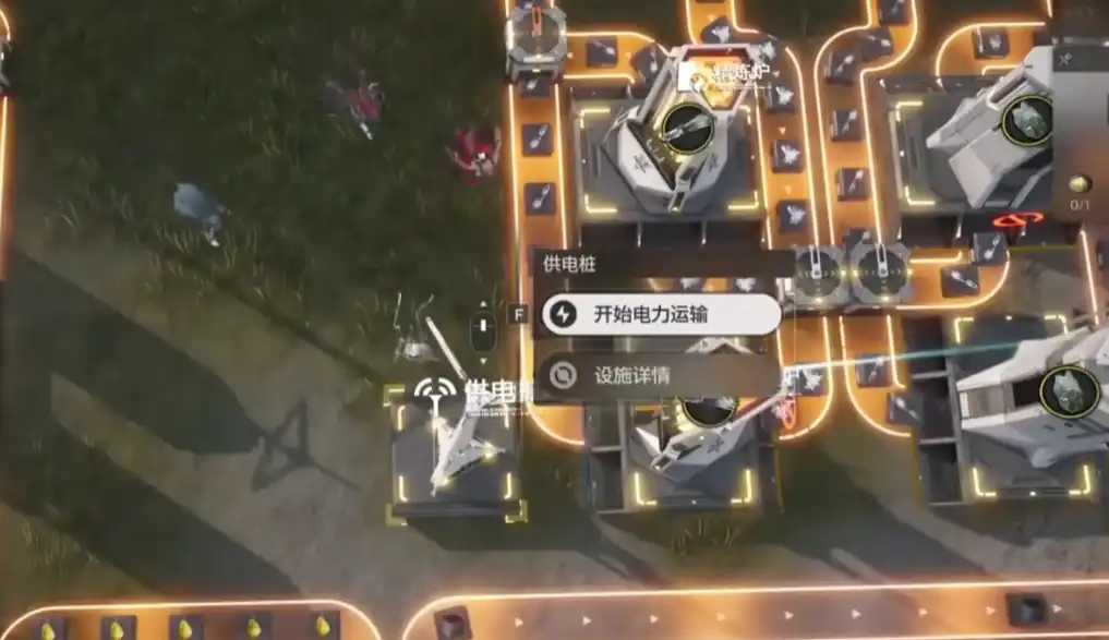 然后经过分流之后,这些设施生产出来的东西都会出现在总取线货口上面。最终你就可以在这收获大量的物资,可以理解为基地里的仓库。然后提供电力的设备叫做供电桩,如果我们想让其他设施运作的话,又要善于利用分流器。