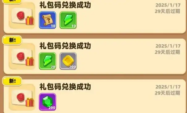 游戏中礼包目前有三个,也就是说有三个兑换码,分别是vip666、vip777和vip888,大家拿到后要尽快去使用,随后就能在游戏的兑换窗口中兑换礼包了,这礼包在兑换之后可以获得10个蓝色抽奖卷、30点体力。