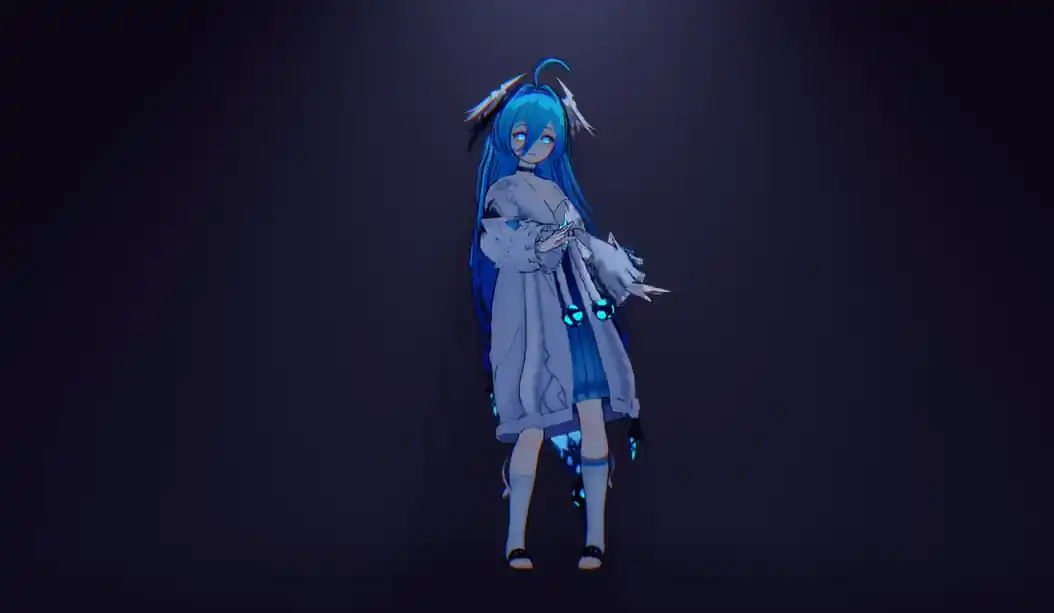菲娜是一位非常富有想象力的童话作家,本身就以一个少女形象出现在我们面前。一头长长深蓝色的秀发更是令人挪不开眼,希望可以一直仰望它的美。然后头顶上还带着犹如天使一般的佩饰,美丽又生动。还穿着犹如睡衣一般的长裙,更是增添了几分韵味儿。