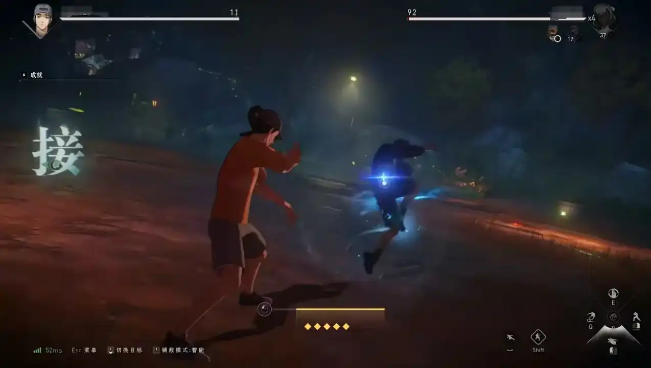 1、基础功能:其中左键代表普通攻击,右键则是代表防御,WASD就是代表移动了,QE代表技能,R代表奥义,其中还有个空格代表闪避。