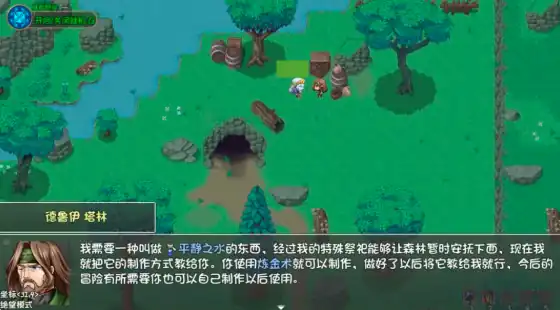 第二个主要任务是安抚森林玩家,可以在本层右上方遇到一个名为德鲁伊的角色,点击之后可以开启任务。在任务开启后就可以自动学会平静药水的制作,直接点击菜单就可以看到该药水在本层刷怪后就可以获得,做好药水之后再次交给德鲁伊就算完成任务了。