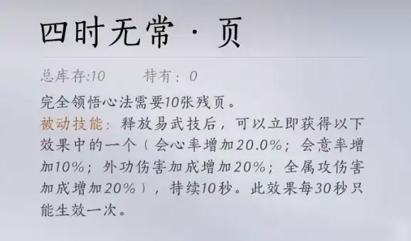 游戏中除了武功和奇术之外,还有心法也可以获得,这些内容都可以稳定的帮助大家来提升,他们的获得方式都会在后期来进行触发,可能大家对于,四时不太了解,作为一个游戏中的心法,许多朋友们都想要获得。同时对大家还有增益的效果,来更好的增伤释放效果的时候,也会更加的强劲,玩家们来到这个书店之后,如果想要获得残页,首先需要积累5000的长鸣玉。