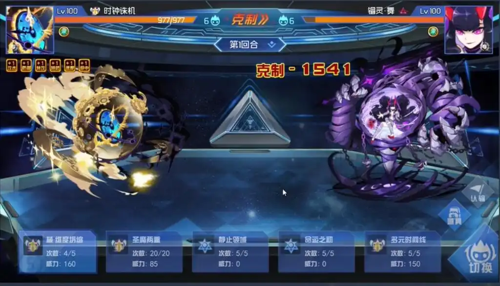 反转自身能力下降状态后,可以使对手随机2个技能的PP归零,在接下来的3个回合内,如果自身的能力提升状态被消除,每消除1项就会附加80点固定伤害,时钟诛机的第五技能是械·维度坍缩,这个技能也是必中的,它可以消除对手的回合类效果,并且自身免疫下1次受到的异常状态,有50%的几率造成2倍伤害,如果自身处于能力提升状态,则几率翻倍,此外还会附加自身最大体力25%的固定伤害,如果对手免疫固定伤害,则转变为真实伤害。
