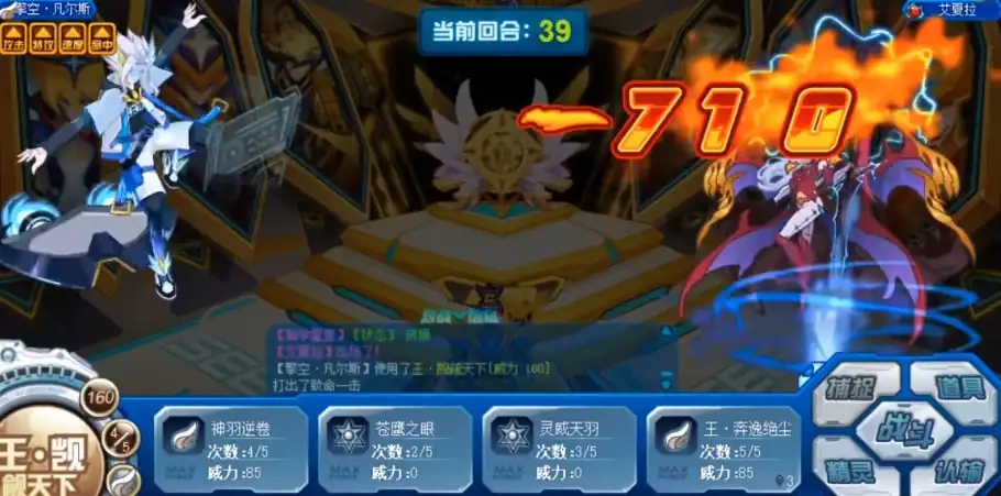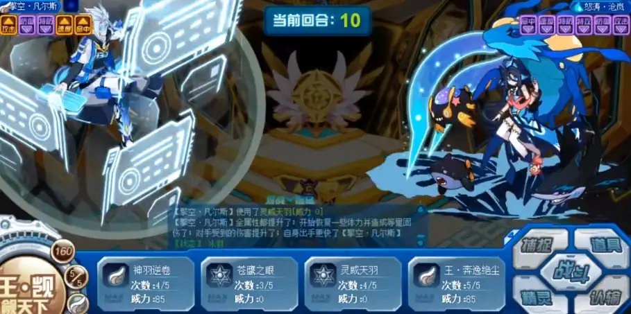 灵威天羽也是一项强力技能,它同样具备必中的特点,释放后可使自身全属性+1,在2回合内每回合攻击和速度都能得到进一步提升,在4回合内,每回合都能恢复自身最大体力的1/3,并造成等量的固定伤害,使用后的下2回合,对手受到的伤害会提高100%,同时自身所有技能先制+2,王·奔逸绝尘作为先制+3的技能,具有强大的控场与回复能力。