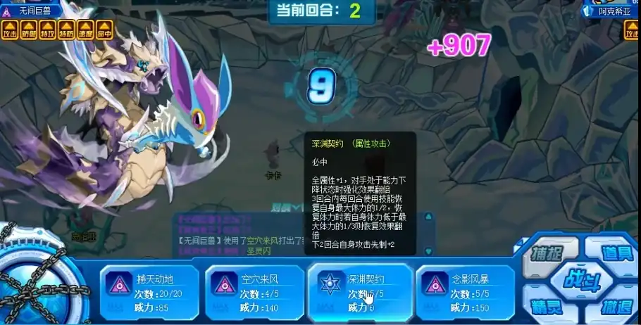 它是必中的技能保证了释放的成功率,当技能使用成功时,会改变对手的防御等级和特防等级,与之前的技能不同的是,它会使对手防御等级-3且特防等级-3,如果在使用这个技能时打出致命一击,那么所造成的伤害值的100%会恢复自身体力,此外还会附加对手当前体力20%的伤害。