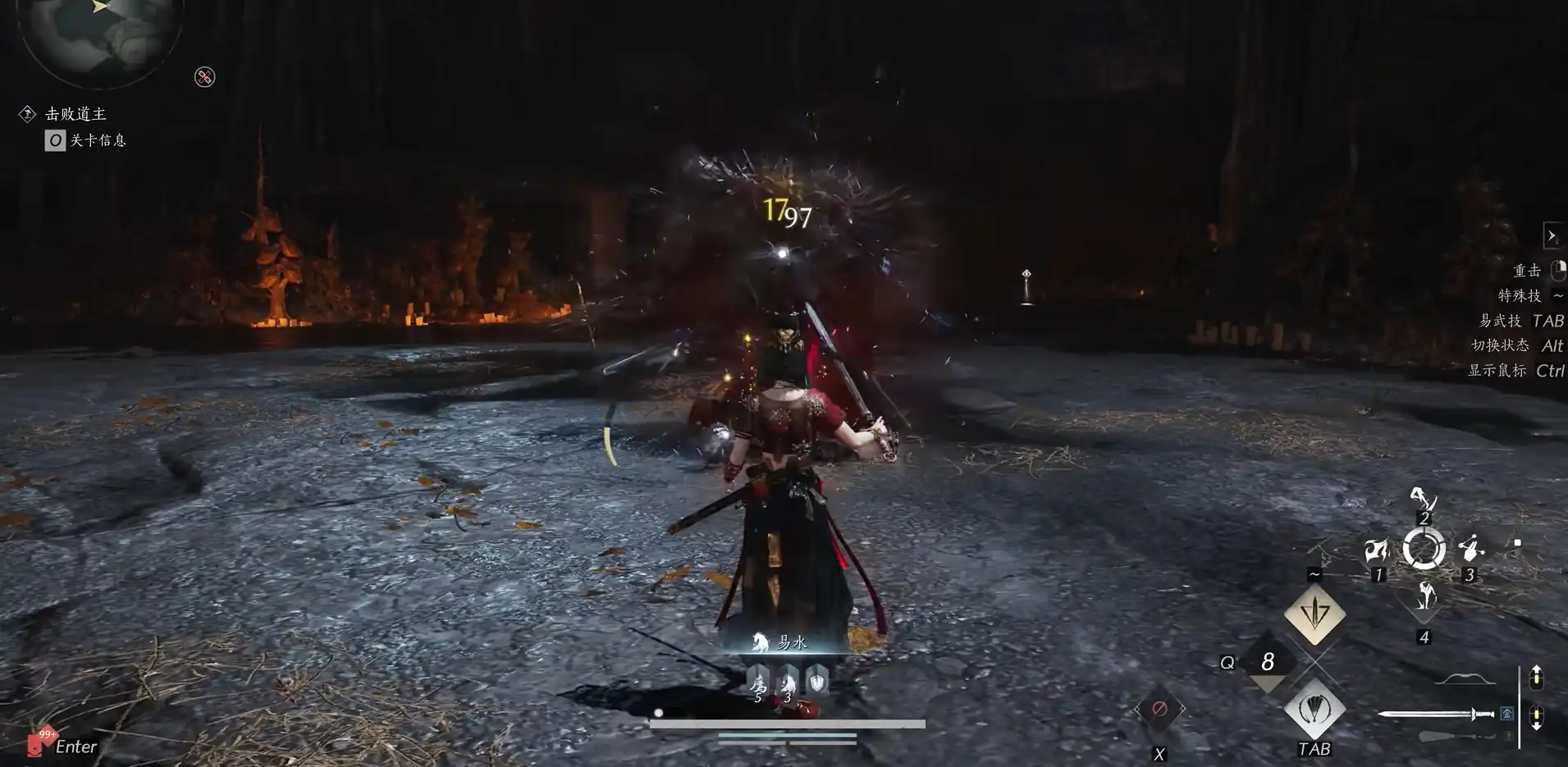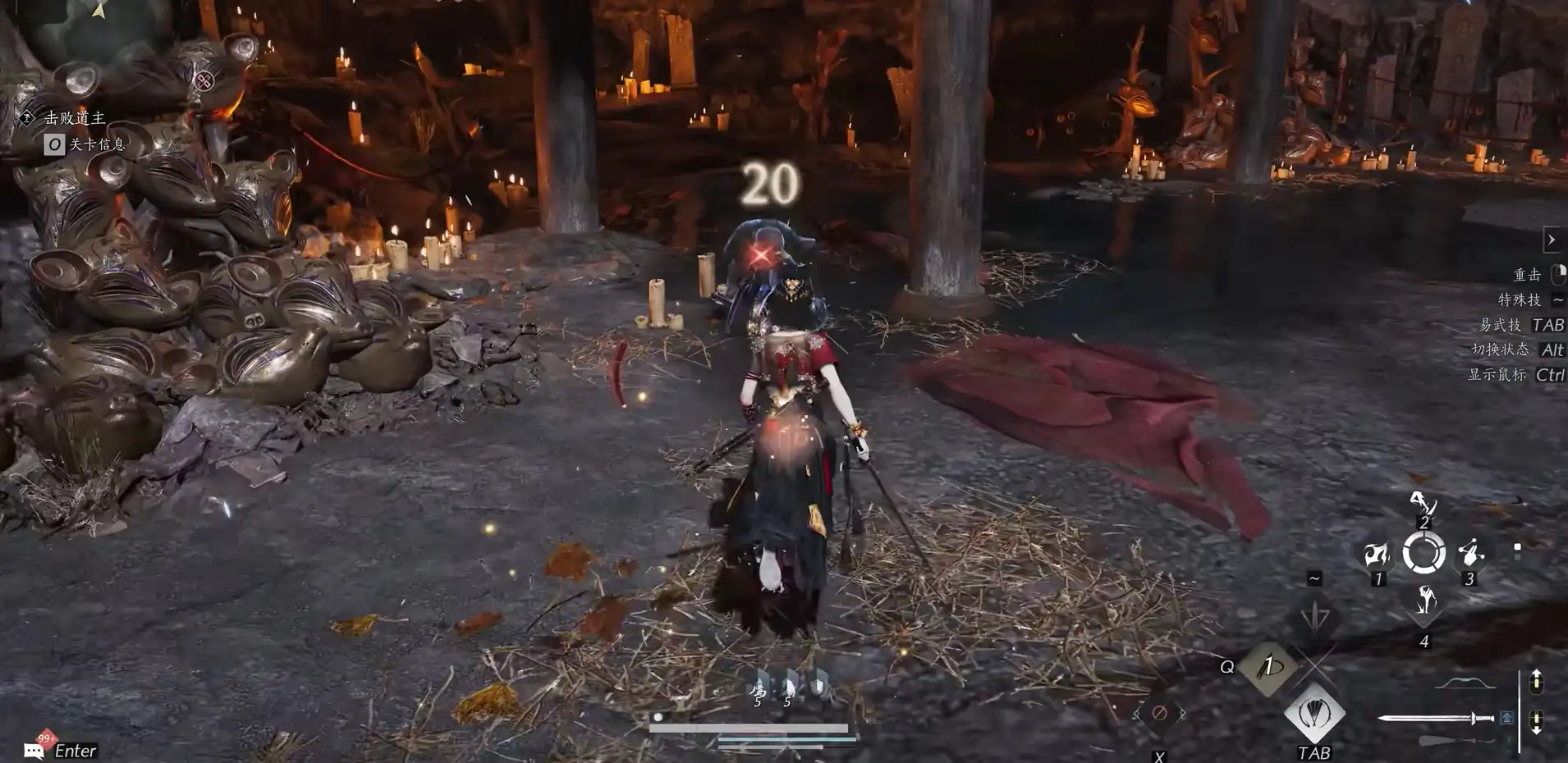 道主的打法也比较简单,他最开始会以合体的形式攻击玩家,难度不大,招式也比较好挡下,唯一要注意的就是他开始转圈时会连续对玩家进行攻击,只要玩家一直进行招架就不会受到太多的伤害,甚至能做到无伤。等到了第二阶段,道主会变成三小只并潜入地下,时不时会跳出来攻击玩家,此时只要用弓箭或远程手段来对付跳出来的那一只道主即可。