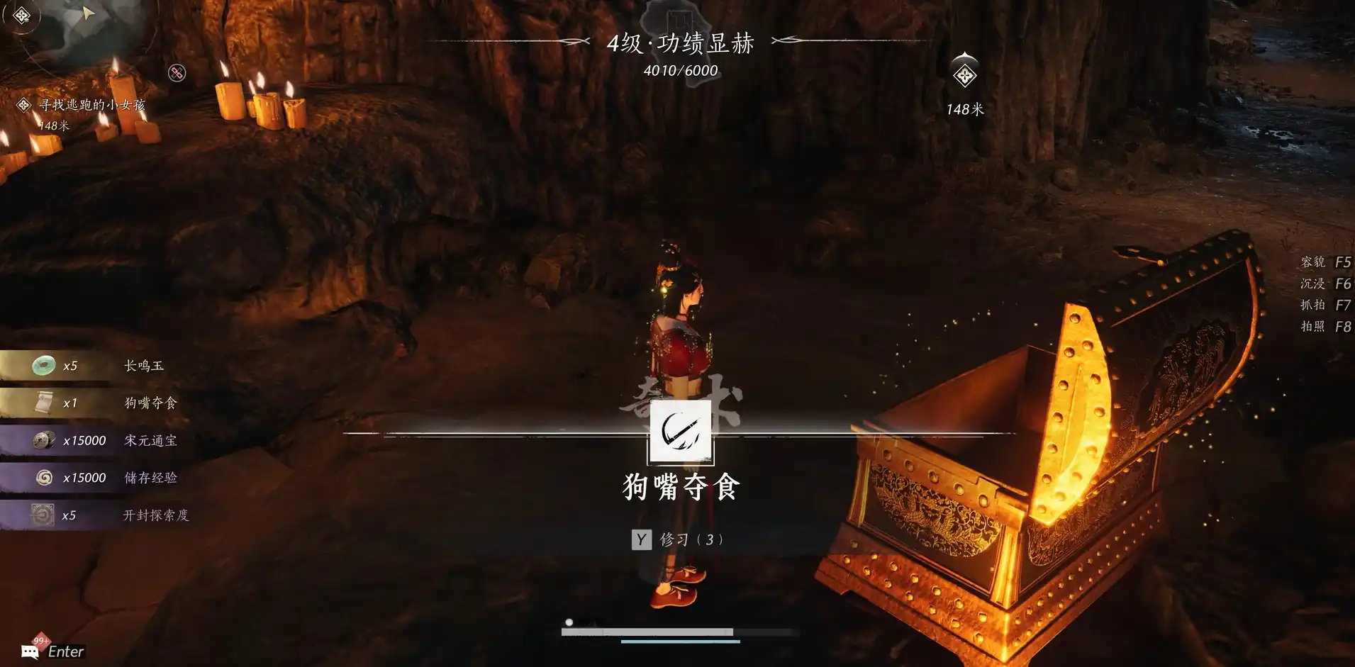 当玩家将第二阶段的道主给击败后,就会进入剧情CG,并在完成后解锁无忧镇的镇守据点,然后玩家就能跟随任务指引去追小女孩(道主真身),沿途会遇上一个宝箱,打开后就能学会狗嘴夺食这门奇术了。