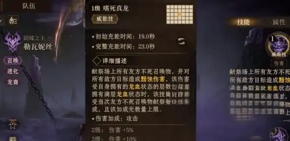 勒瓦妮丝的威能技嗜死真龙是一种需要献祭才能给敌人造成勒瓦妮丝黯蚀伤害的技能,把队友的不死召唤物给全部献祭出去就能给所有的敌人造成360%的黯蚀攻击伤害,当自身正处于龙血状态时,该技能的伤害还能在增加7%,注意是每叠加一层龙血伤害就会加7%哦。