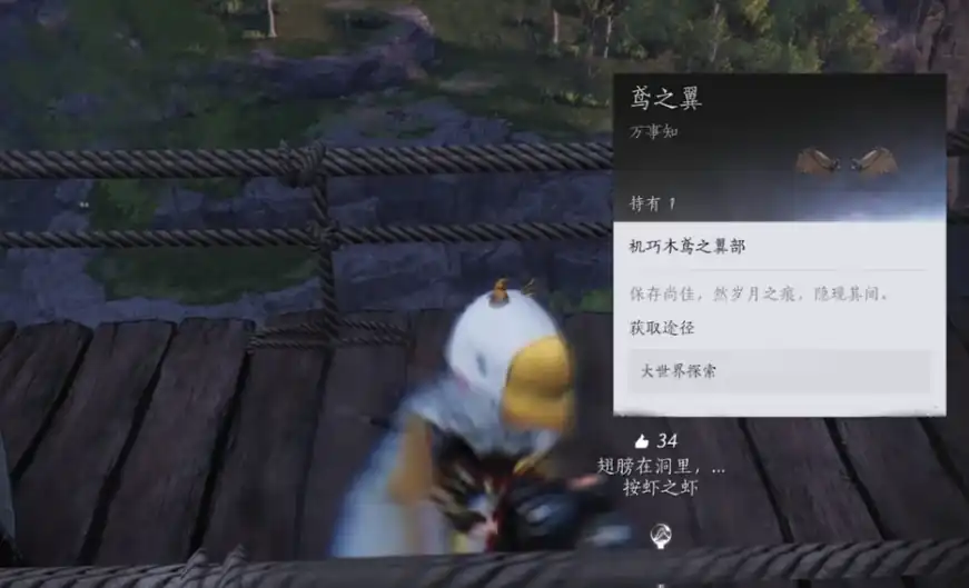 玩家想要获得木鸢的时候需要获得三个碎片,而第1个碎片是在镜潭南侧瀑布上面的洞穴当中。玩家想要去这个地方,可以从琵琶沟前往武王城庙然后找到这个山洞,这时候玩家就可以获得第1个木鸢的碎片。