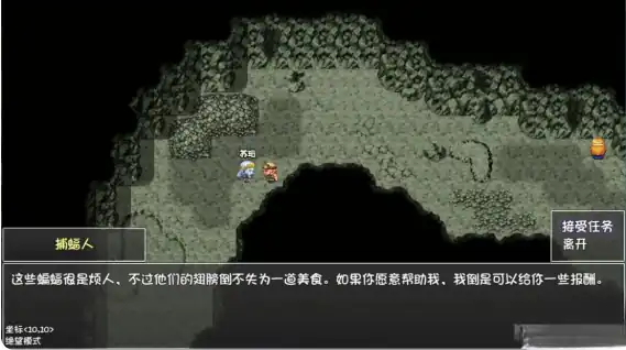第二层的任务“蝙蝠翅膀”继续引导玩家深入地图,通过与NPC对话接取任务后,需要击杀蝙蝠获取7个翅膀。任务奖励提升了玩家的基础能力,但更重要的是,它让玩家逐渐适应任务目标与怪物分布的关系。进入第三层后,任务“野兽狩猎”由NPC艾米发起,玩家需要刷图中的怪物完成狩猎任务。完成后,与艾米的对话不仅带来了丰厚奖励,还通过剧情让玩家逐步了解更广阔的冒险背景。此层中,建议玩家刷取10个熊皮,为后续任务储备必需材料。